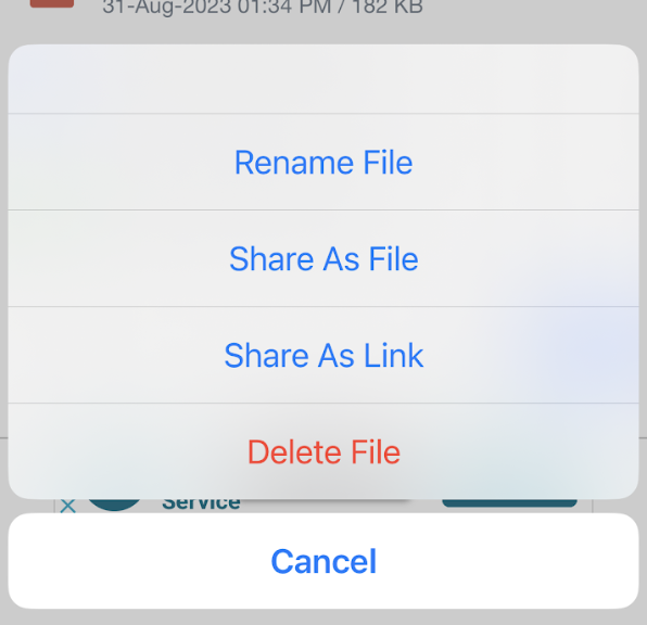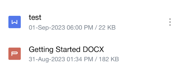 On home screen, identify the file that you wish to rename and select 3 dots next to it