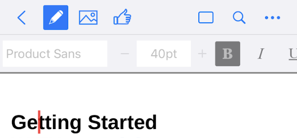 Activate the edit controls from the top by pressing the pencil button - toolset containing options like font size, font family, etc should show up