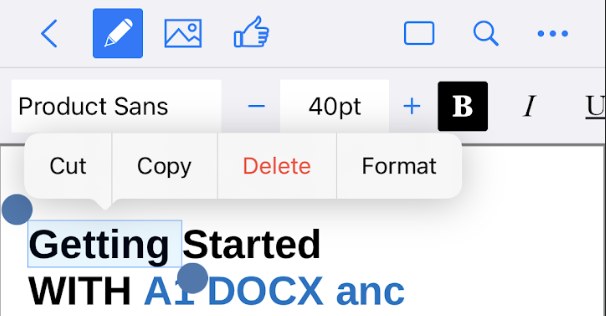 In order to change the font family or font size of the text in A1 Word / A1 XLS, please follow the following approach -